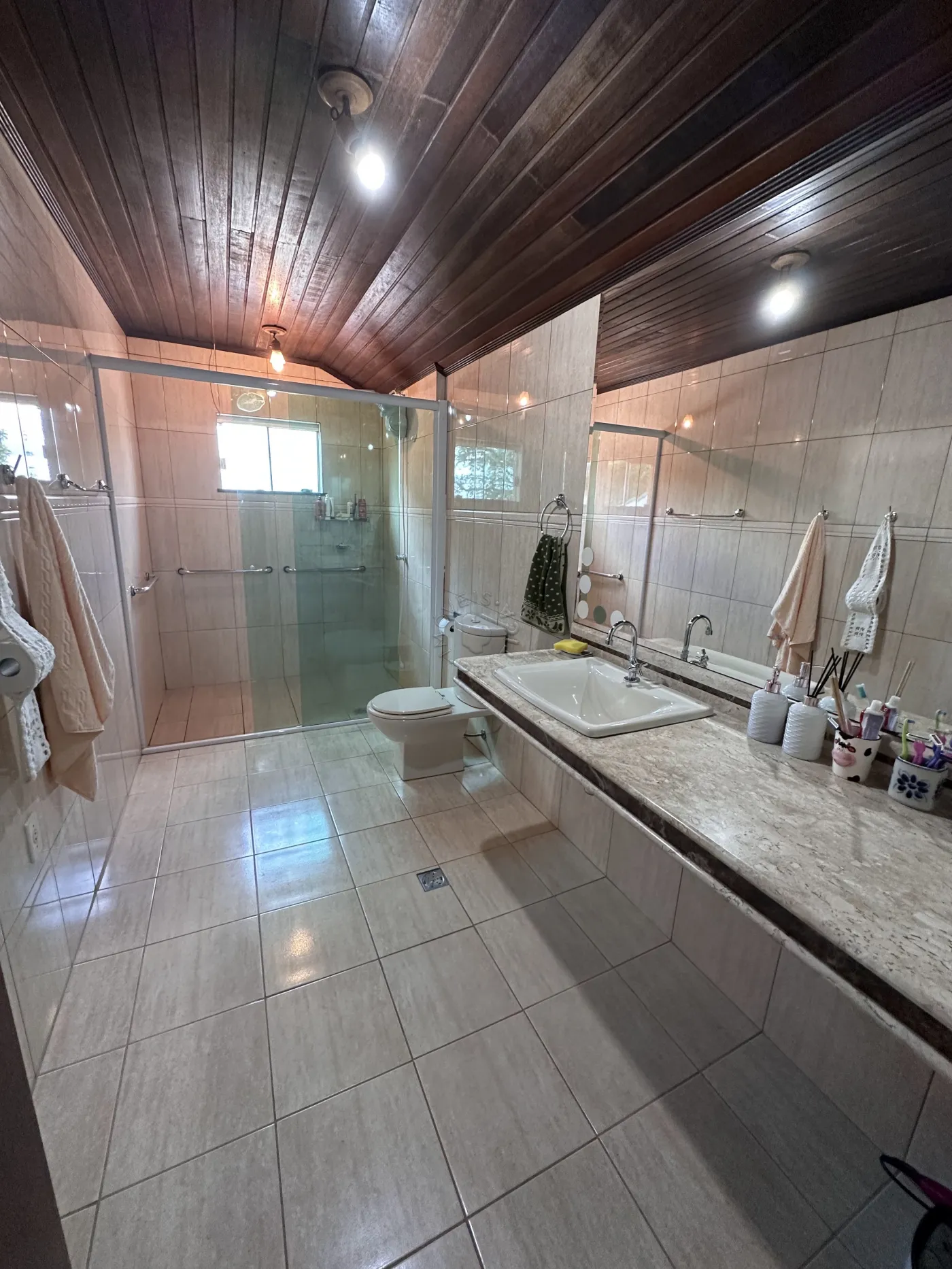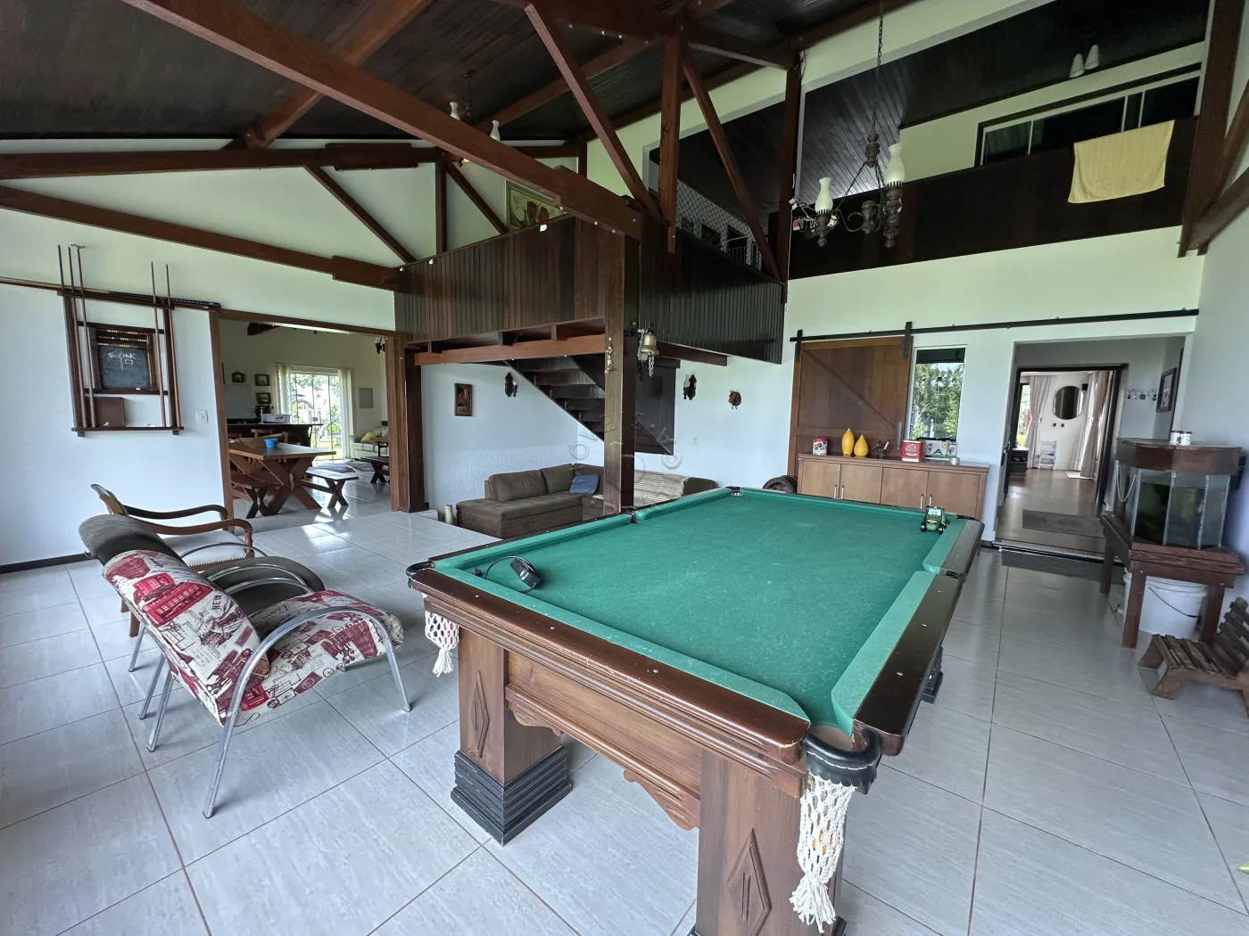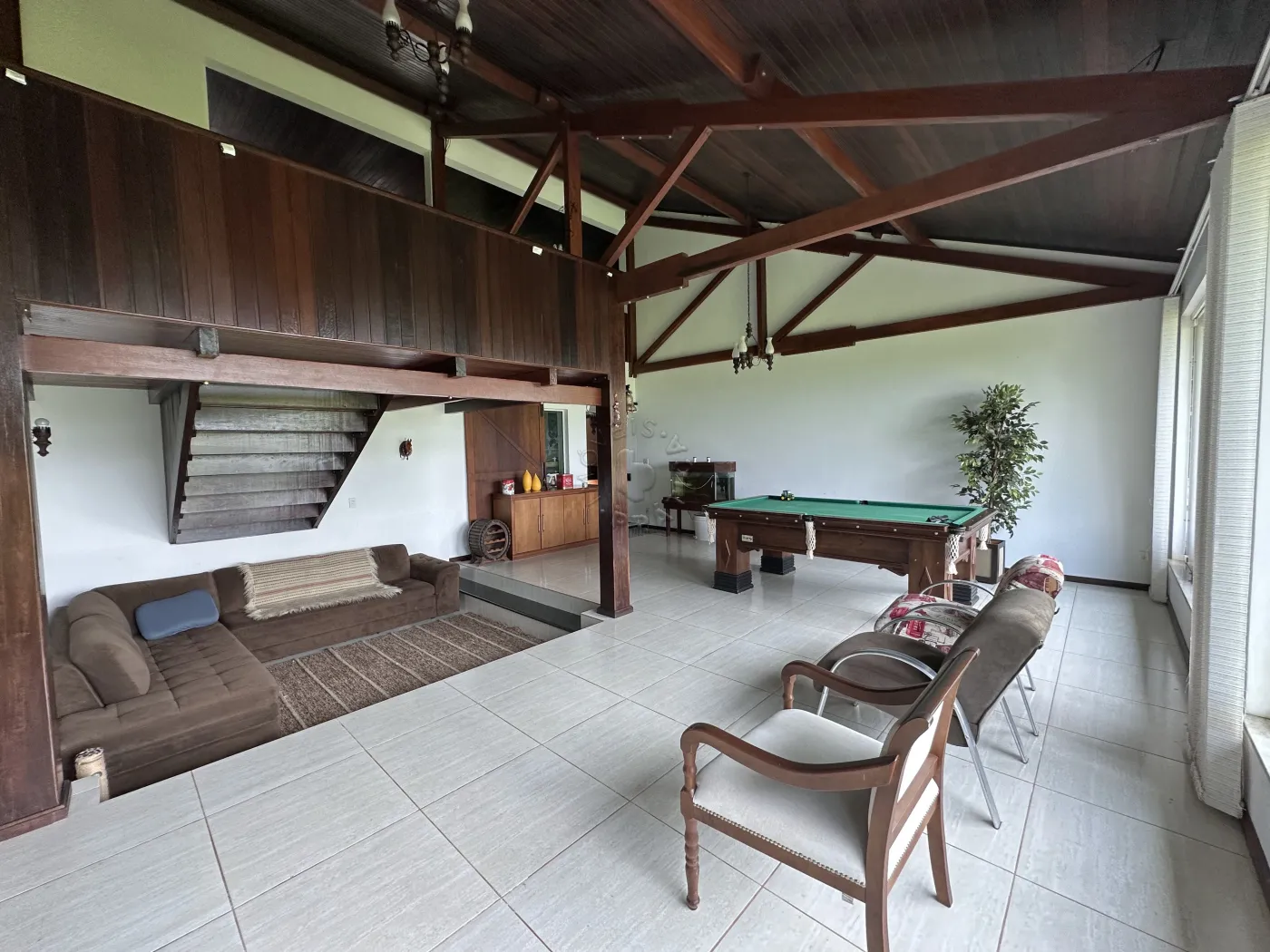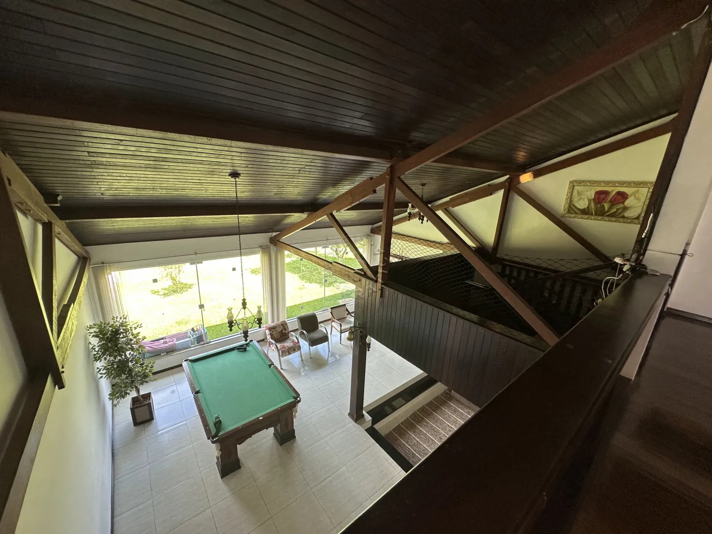 No piso superior, a residência oferece três quartos, uma sala de TV, um mezanino amplo e imponente, duas sacadas e ambientes climatizados com ar-condicionado. O acabamento é um espetáculo à parte, com forro em madeira itaúba e vigas em ipê champanhe, trazendo sofisticação e charme atemporal.