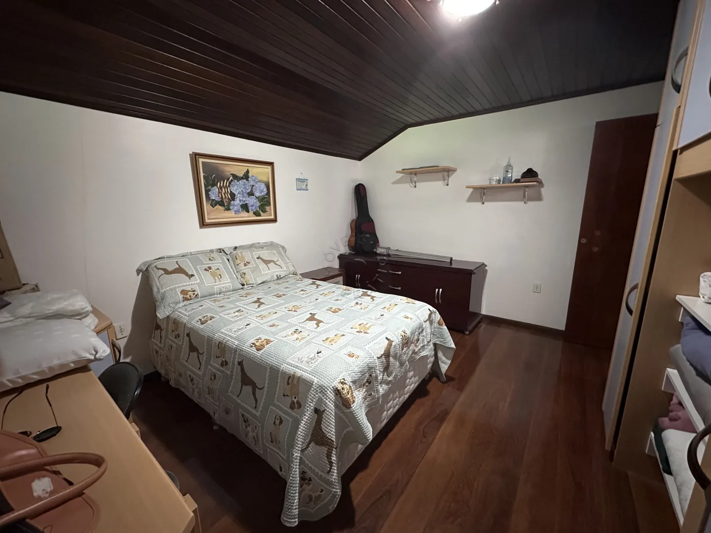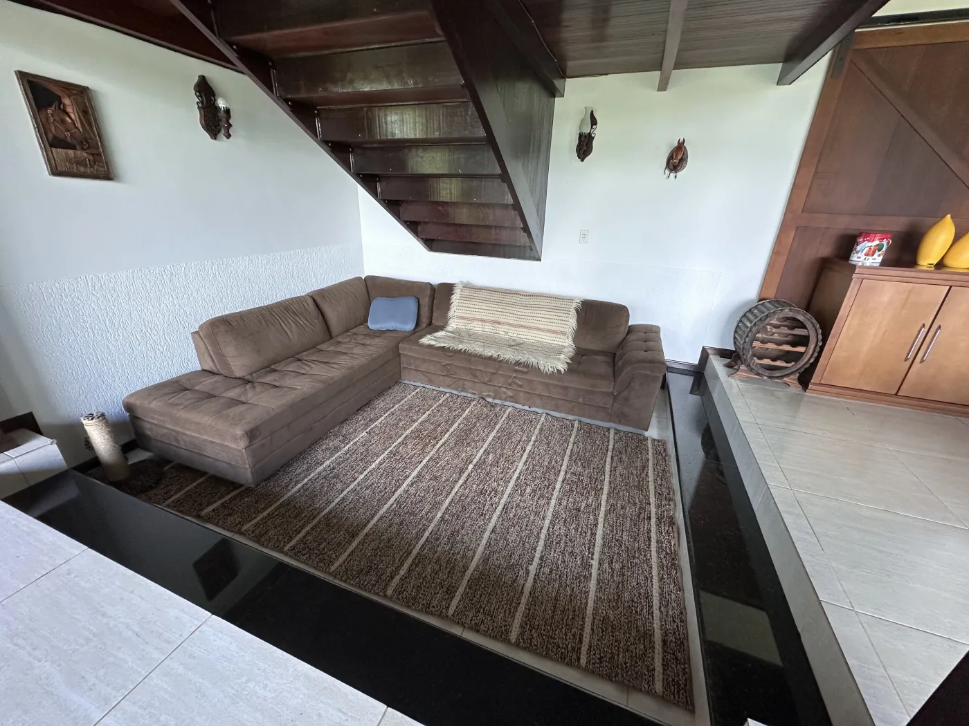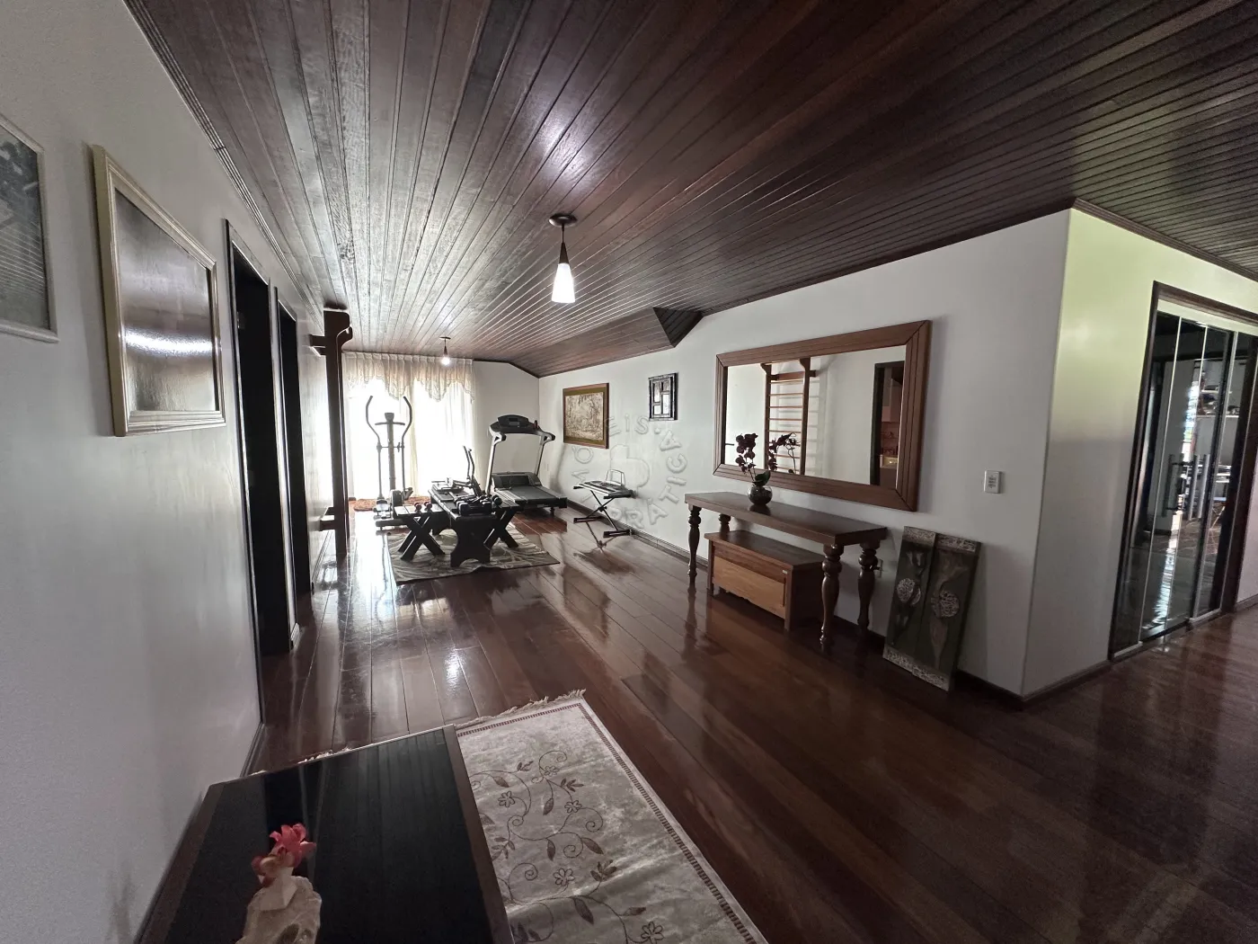 No piso superior, a residência oferece três quartos, uma sala de TV, um mezanino amplo e imponente, duas sacadas e ambientes climatizados com ar-condicionado. O acabamento é um espetáculo à parte, com forro em madeira itaúba e vigas em ipê champanhe, trazendo sofisticação e charme atemporal.