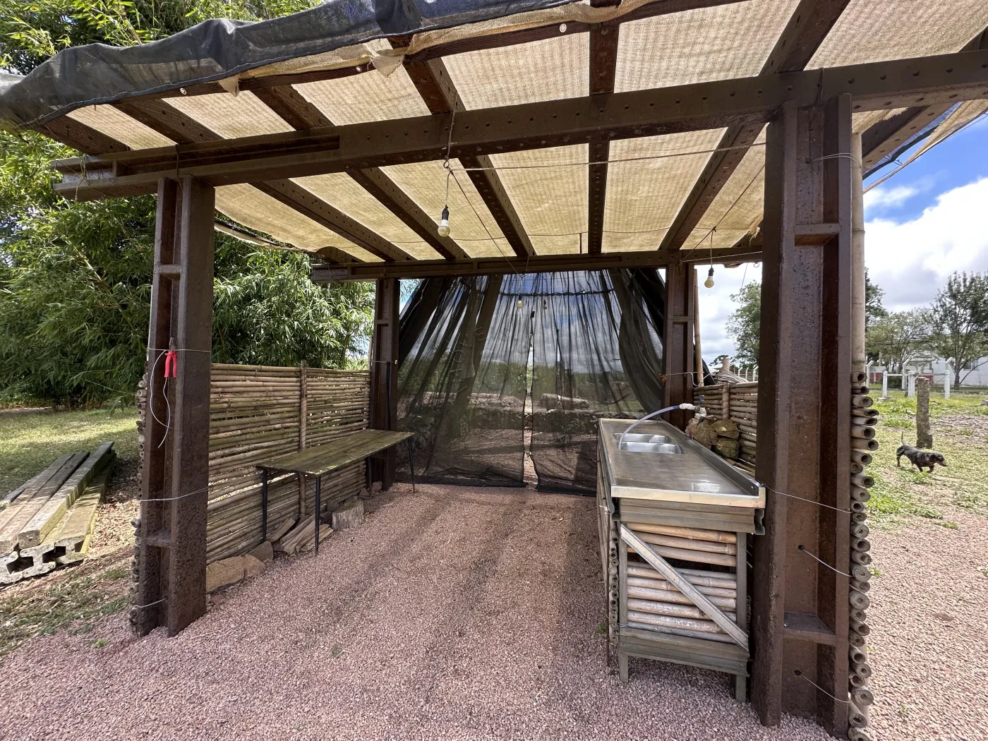 1 Barracão aberto com cerca de 200,00 metros quadrados.