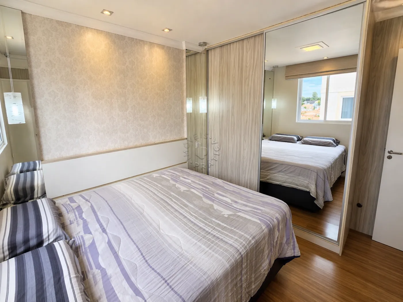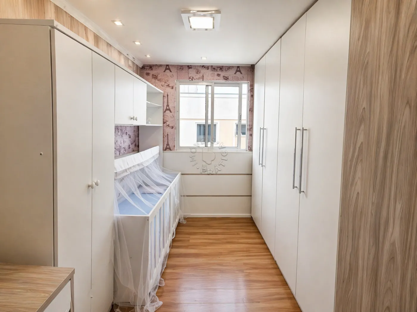Na área íntima, são dois dormitórios com roupeiros planejados, proporcionando excelente aproveitamento de espaço e organização. O piso laminado traz conforto térmico e um toque de elegância aos ambientes.