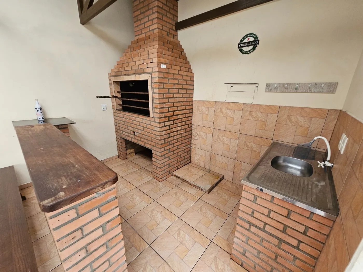Ele possui sala de estar, cozinha, 3 quartos sendo uma suíte, banheiro social, área de serviço, churrasqueira, lavabo e garagem.