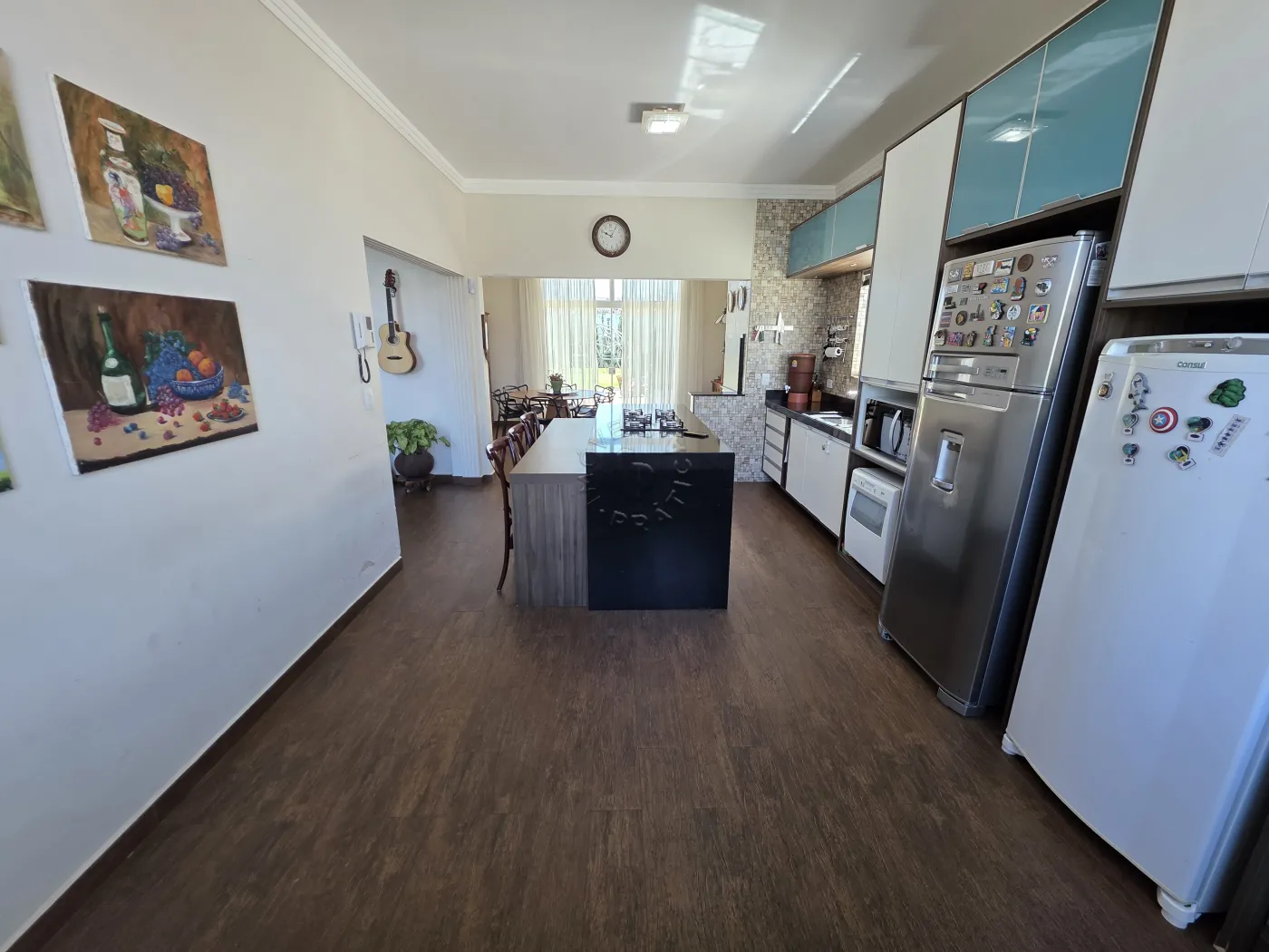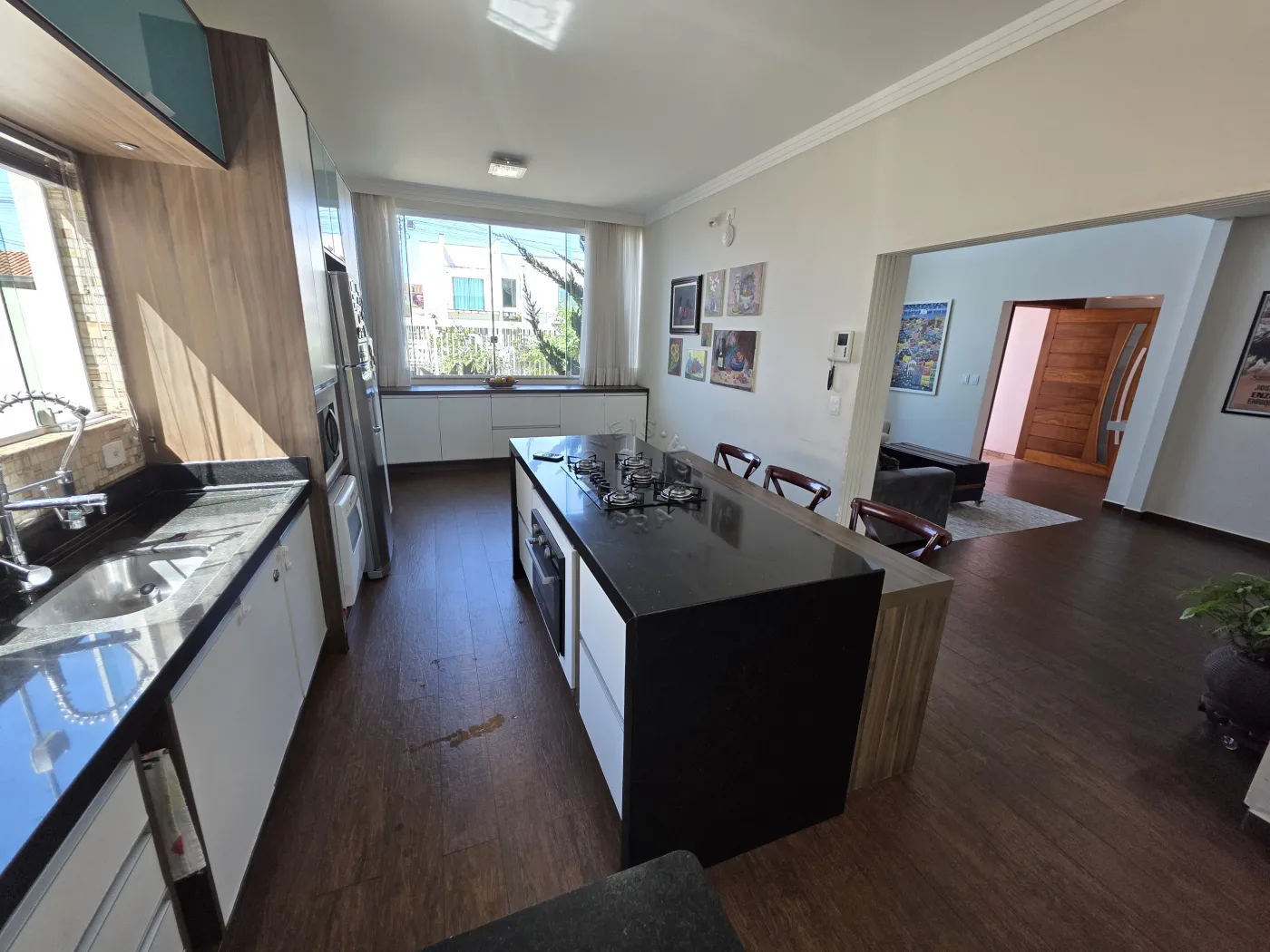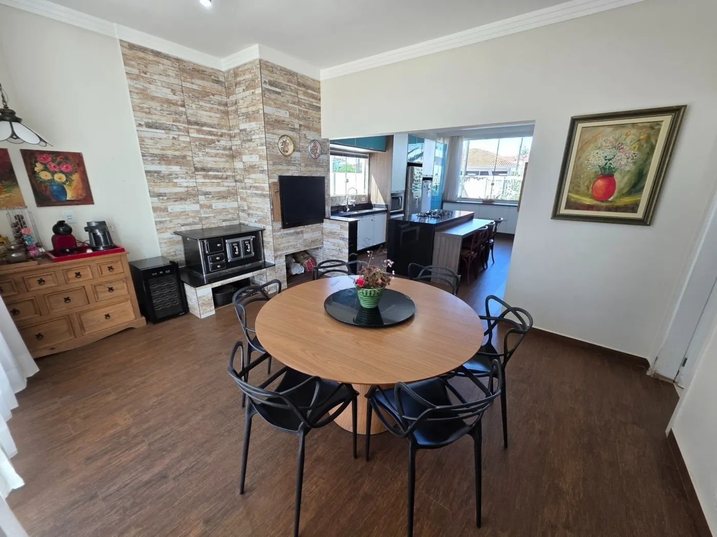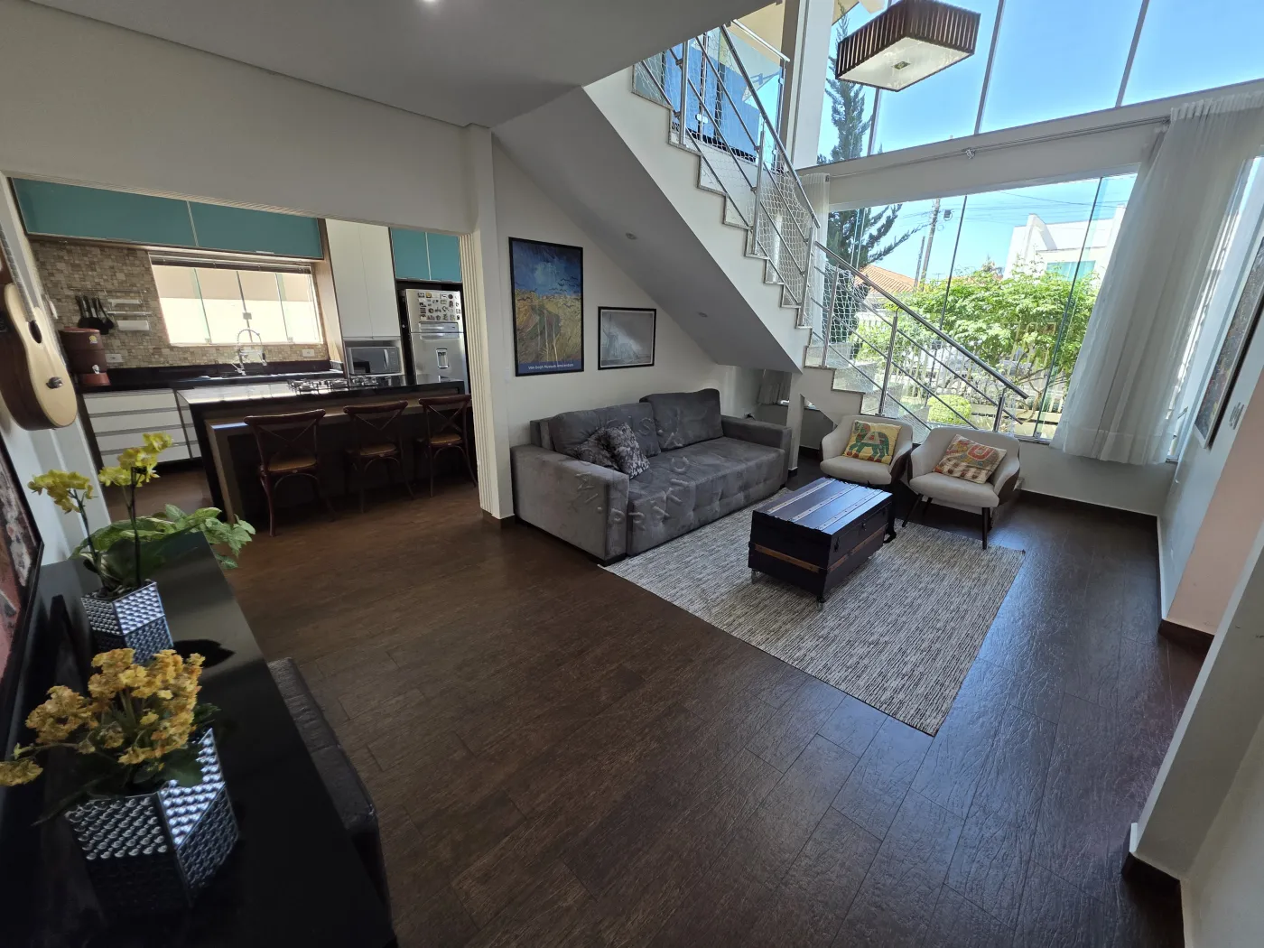 O imóvel dispõe de ampla sala de estar, sala de jantar e cozinha conjugados, criando um ambiente acolhedor e sofisticado. Possui ainda área gourmet perfeita para receber amigos e familiares, três quartos, sendo uma suíte com closet, além de área de serviço e garagem coberta para dois carros.
