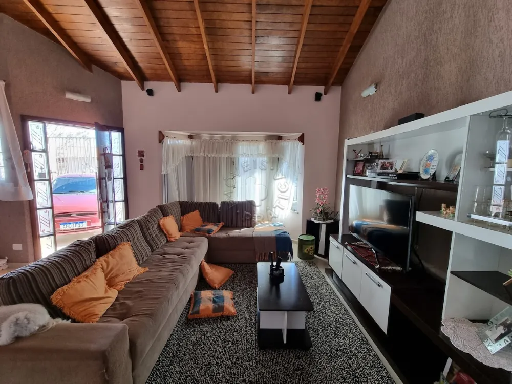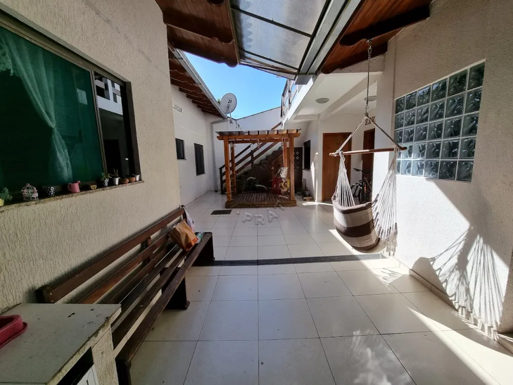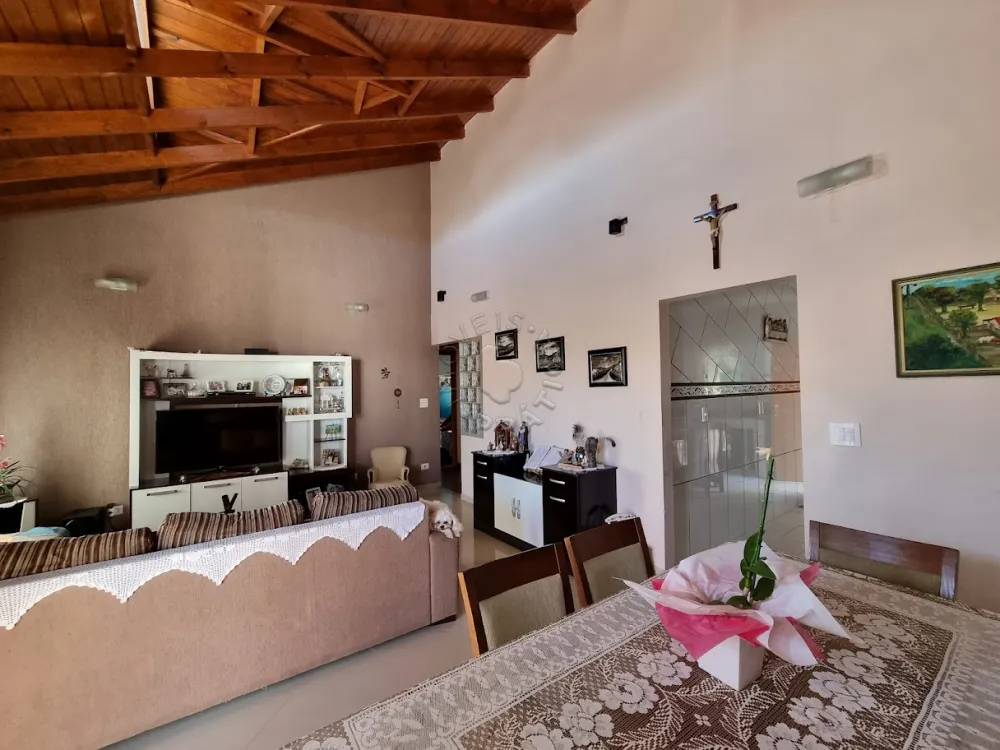 Ela possui belos detalhes em madeira, ampla área construída, três quartos, sendo um deles uma suíte, sala de estar, sala de jantar, cozinha, lavanderia, churrasqueira e excelente espaço externo composto por uma construção com duas salas e um banheiro!