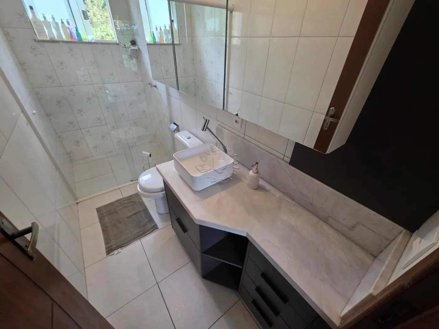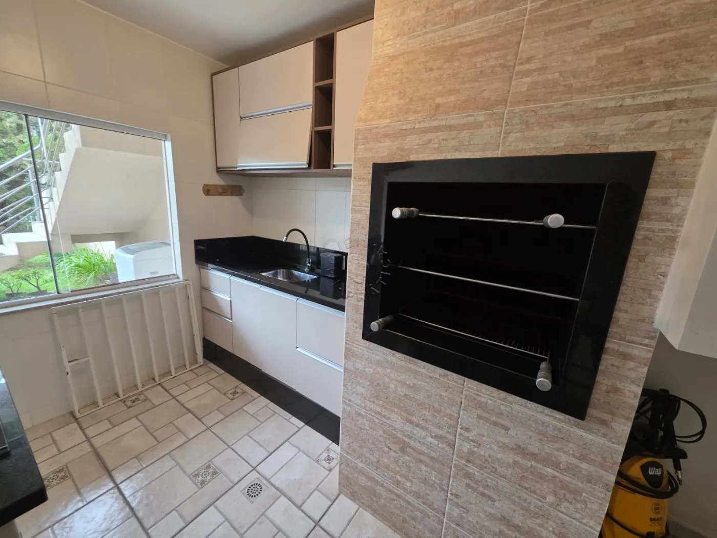 No térreo, uma charmosa área gourmet com churrasqueira, perfeita para momentos especiais com a família e amigos, além de garagem para dois veículos, sendo uma vaga coberta.