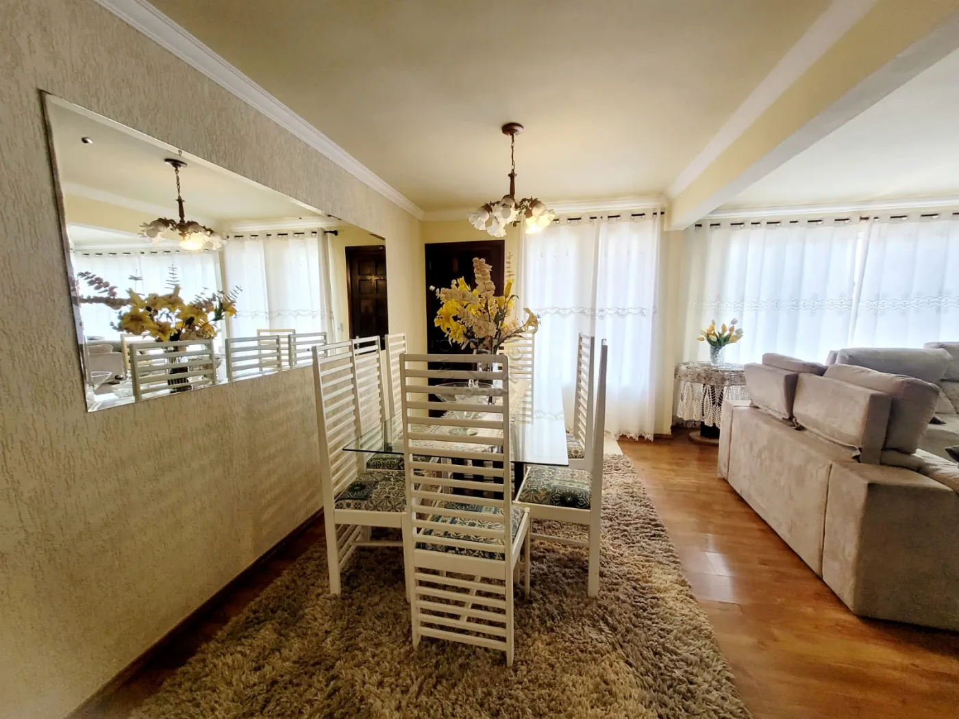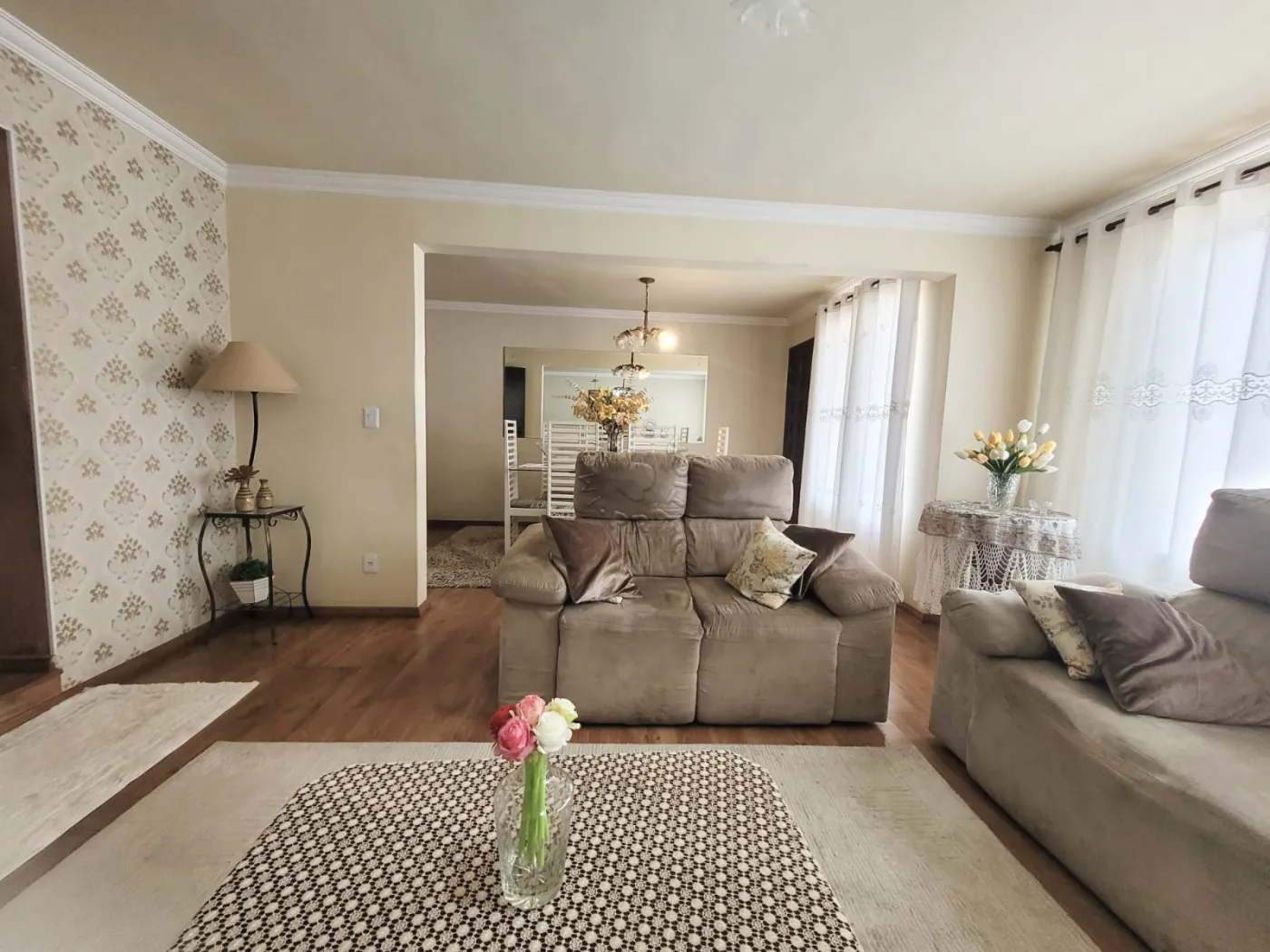 Sala de estar e sala de jantar, integradas e muito espaçosas