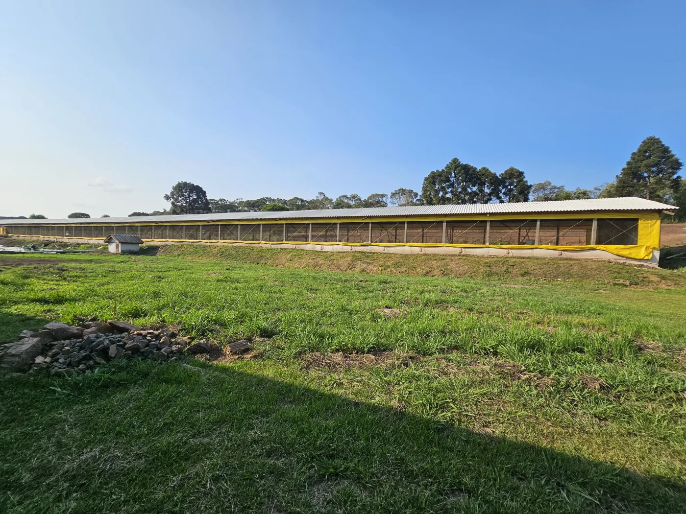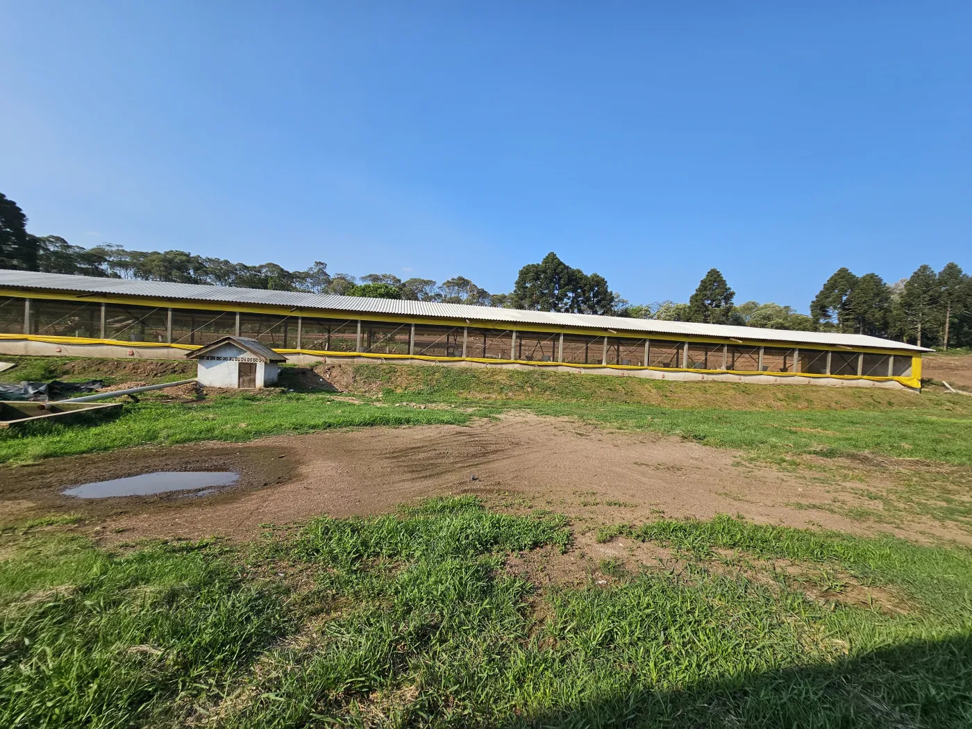 Infraestrutura Completa: Galpões prontos, com instalações adequadas que atendem a todas as exigências de sanidade e bem-estar animal.